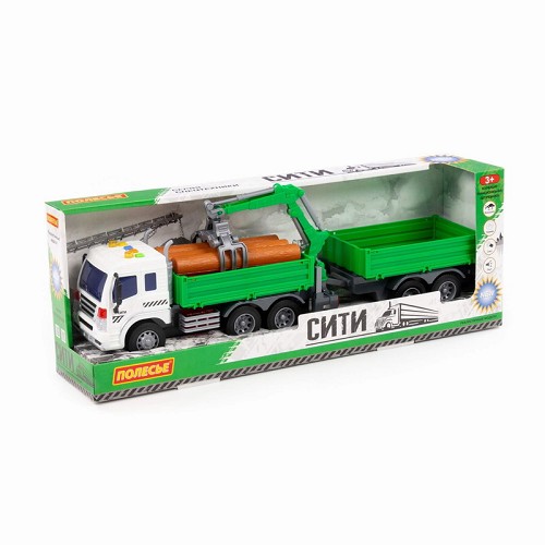 Автомобиль Сити бортовой с манипулятором и прицепом зелёный (49х10,2х14,7см) ине