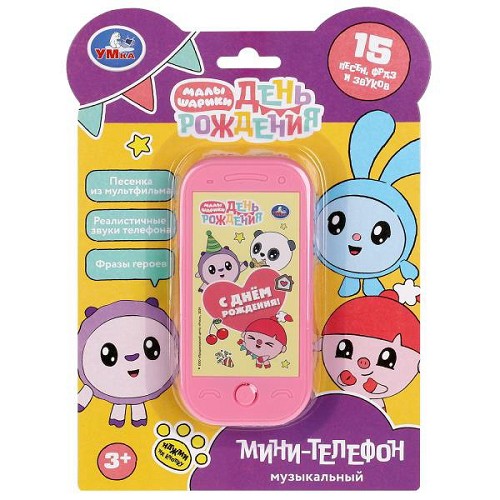 Телефон обуч. Малышарики (15песен,звуков) на/блист. HT1458-R1-FT