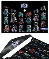 Папка-конверт на кнопке А4 INTELLIGENT "Котики" DE-75602 пластик.,асс.
