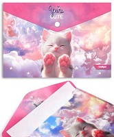 268595 - Папка-конверт на кнопке А4 INTELLIGENT "Котик" DE-75603 пластик.,асс.