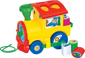 Занимательный паровоз выполняет несколько функций. Игрушка выступает в роли сортера и каталки на шнурке. Сортер знакомит ребёнка с цветом и формой, а также тренирует мелкую моторику рук. В ходе игры малышу необходимо подобрать к каждой фигурке отверстие той же формы, это развивает логическое мышление. Использование игрушки в качестве каталки позволяет ребёнку постичь пространственные свойства предметов.