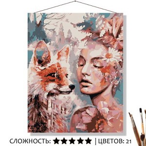 Картина по ном. на холсте (50х40см) с подрам. Девушка и лиса (21цв.) КН5040361