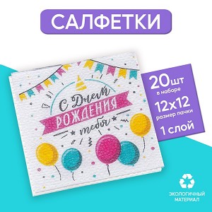 Салфетки бум.однослойные (24х24см,20шт) С днём рождения тебя 5067338