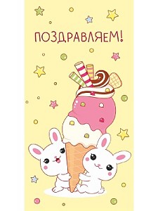 259143 - Конверт д/денег Поздравляем! (зайчики с мороженым) ЛХ-0146