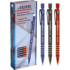 Карандаш авт. 0,7мм deVENTE HB с ластиком, асс., металл. клип. 5010700