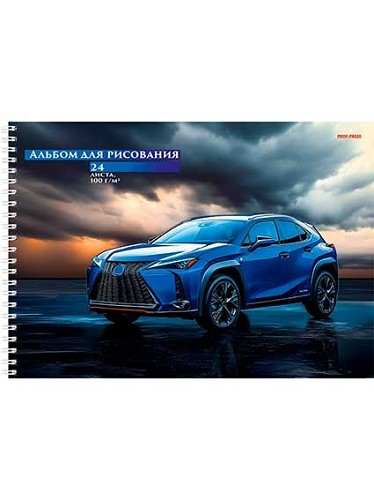 Альбом для рис.24л. Проф-Пресс спираль "Синий автомобиль-12" 24-7577 бл.-офс.