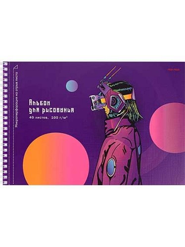 Альбом для рис.40л. Проф-Пресс спираль "Виртуальная реальность" 40-5676 лён,микр
