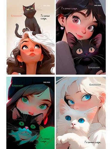 Блокнот А6 24л. Проф-Пресс "Девушки и коты" Б24-4699 цв.мелов.обл.,асс.