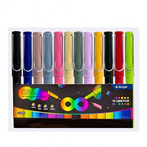 Карандаши вечные 12цв. ALINGAR AL11071 с ласт.,цв.пластик.корп.,заточ.,ПВХ-уп.