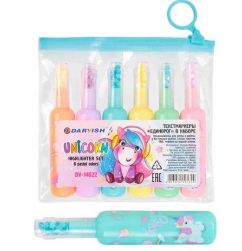 Набор маркеров текст. 6цв. Darvish "Единорог" DV-14622 мини,пастельные,zip-паке