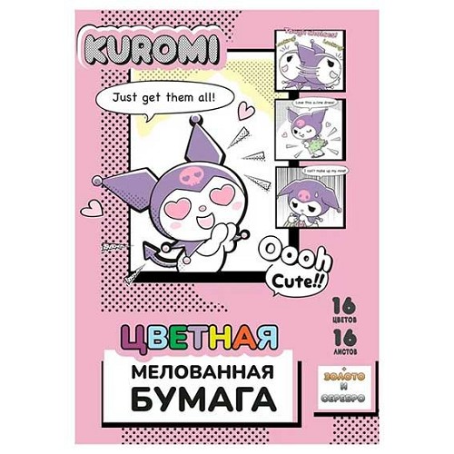 Бумага цв. мелов. А4 16л.16цв. CENTRUM "Kuromi" 77122 на скобе
