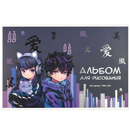 Альбом для рис.24л. ФЕНИКС "Кибер аниме" 69881 на скобе,тисн.фольг.
