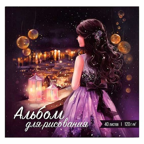 Альбом для рис.40л. ФЕНИКС склейка "Мечтательница" 66647 уф-лак,с откид.крышк.17