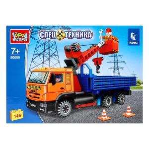 Мини-конструктор Город Мастеров KAMAZ с краном и люлькой (146дет) в/к 50009-KK