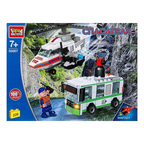 Мини-конструктор Город Мастеров Вертолет спасает автобус (226дет,магнит) в/к 500