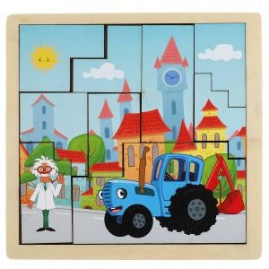 Игра дерев. Буратино вкладыш тетрис Синий трактор W019-STR