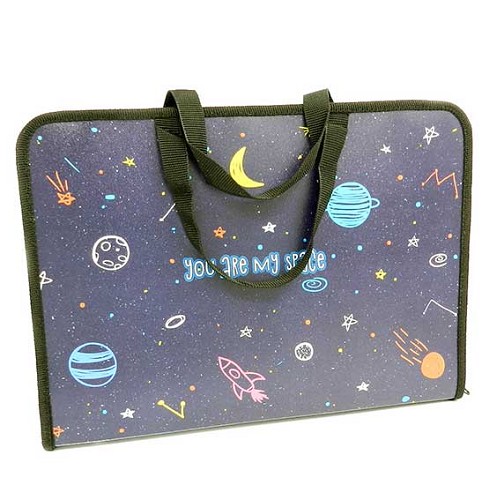 Папка д/труда А4 ПЧЕЛКА ПТР-6 "Звёздное небо" пластик, молн.вокруг,ручка-тесьма