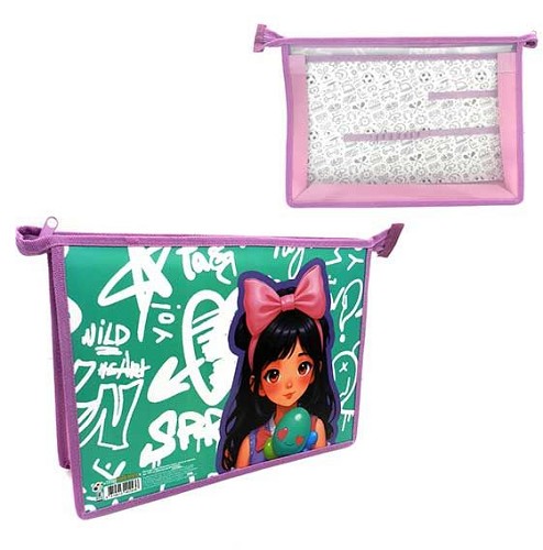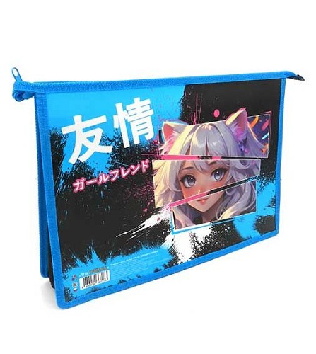 Папка д/труда А4 ПЧЕЛКА ПТР-22 "Девушка с ушками" пластик,на молн.,с диз.