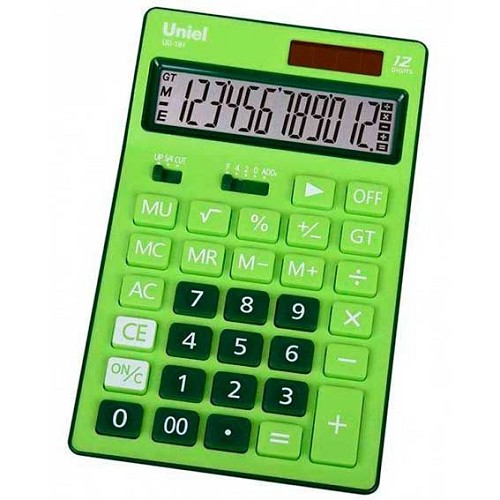 Калькулятор наст. 12разр. Uniel UD-181G зелёный,2пит.,176*110*24мм