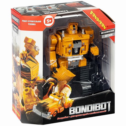 Bondibon Трансформер 2-в-1 Робот-строит.техника Экскаватор жёлтый (23,5х26,5х8см