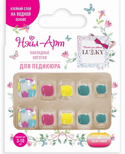 Lukky Набор Нэйл-Арт Pedicure style №02 Color Power (10 наклад.ногтей,3-10лет) в