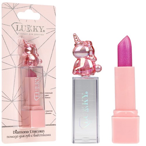 Lukky Diamond Unicorn Помада д/губ (с блестками,с аром.клубники,малин) блистер Т