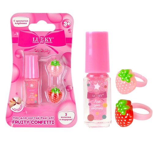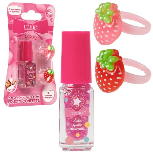 Lukky Fruity Confetti Лак д.ногтей peel off с блёстками,3,5мл,роз.,аромат клубни