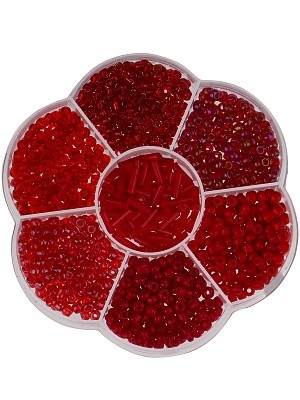 Набор д/бисероплетения (8х8см,7видов бисера) в боксе,красный БИС-8381