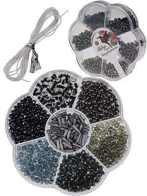 Набор д/бисероплетения (8х8см, 7 видов бисера, в боксе) цв. серый (арт. БИС-8385