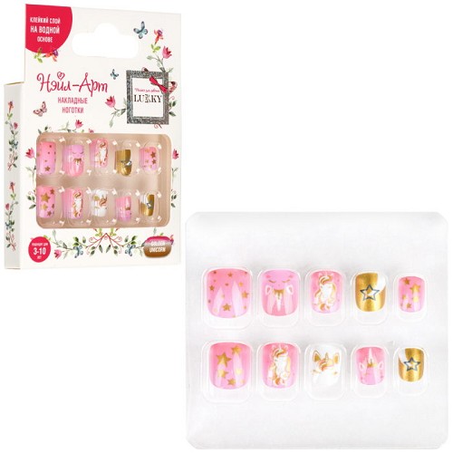 Lukky Нэйл-Арт наб. Golden Unicorn 10 наклад.ногтей на клеевой основе,3-10 лет,к