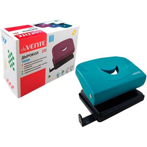 Дырокол 20л. deVENTE "Trend" 4020506 пластик,с линейкой,изумрудно-бирюзовый,к/к