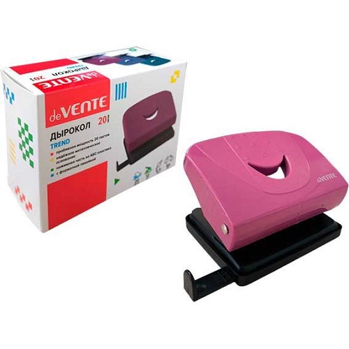 Дырокол 20л. deVENTE "Trend" 4020508 пластик,с линейкой,брусничный,к/к
