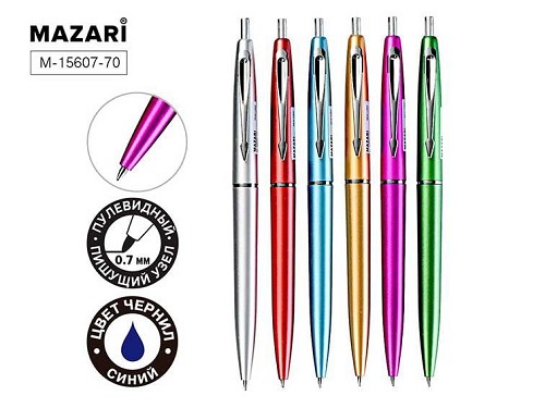 Ручка авт. шар. MAZARI "Erstan" M-15607-70 синяя,пулевидн.,0,7мм,корп.пластик.,а
