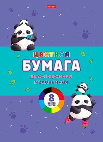 Бумага цв. двухстор. мелов. А4 8л. 8цв. ХАТ "Плюшевые панды" 32084 на скобе