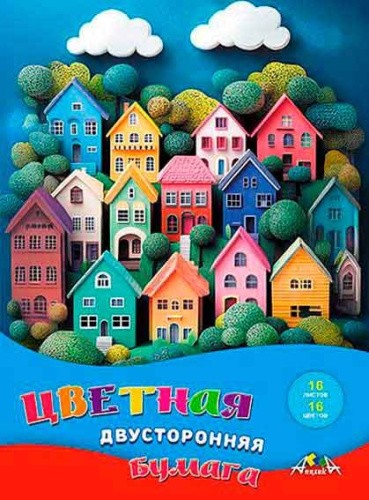 Бумага цв. А4 16л. 8цв. АППЛИКА "Цветные домики" С0023-24