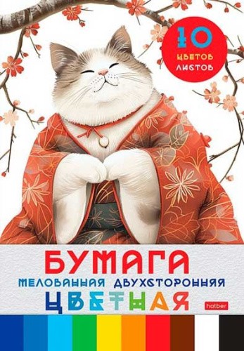 Бумага цв. двухстор. мелов. А4 10л.10цв. ХАТ "Мудрый котик" 32292 в папке
