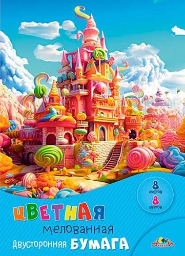 Бумага цв. двухстор. мелов. А4 8л. 8цв. АППЛИКА "Карамельный замок" С2281-17