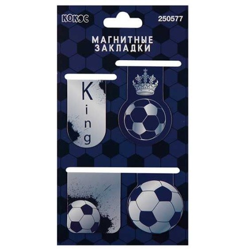 Закладки магнитные КОКОС "Football King" (4шт) 250577 картон