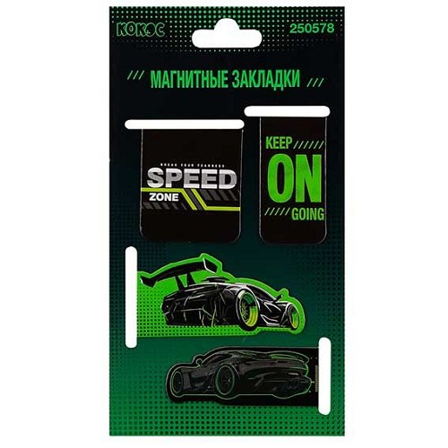 Закладки магнитные КОКОС "Autosport" (4шт) 230820 картон,25*55