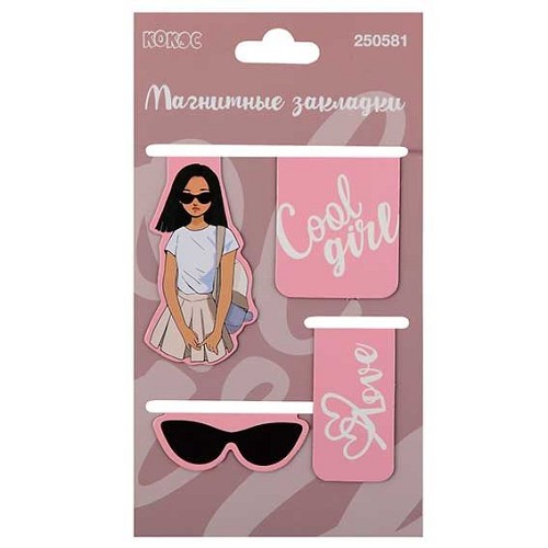 Закладки магнитные КОКОС "Cool girl" (4шт) 250581 картон