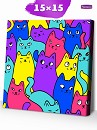 Раскраска на холсте (15х15см) Много котов Р3349 (Развивашки)