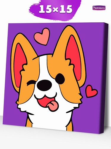 Раскраска на холсте (15х15см) Милый корги Р3374 (Развивашки)