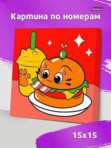 Раскраска на холсте (15х15см) Милый бургер Р3306 (Развивашки)