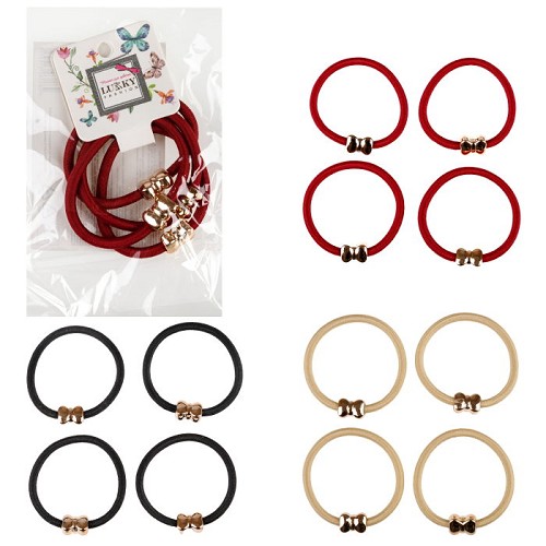 Lukky Fashion Резинки д/волос (4шт,3цв) с метал.бантиком, черный/ золотой/ красн