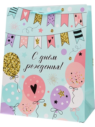 Пакет подар.мат. (33,5х45х15см) День рождения флажки PXL-122083-HBZ3