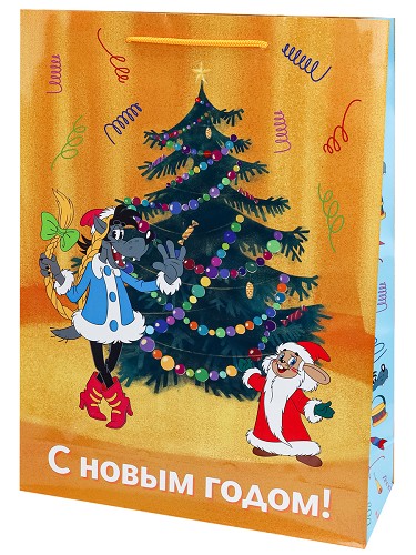 Пакет подар.глянц.лам. (32,4х44,5х10,2см) Ну-Погоди! Заяц и волк у ёлки ППК-2926