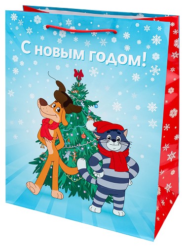 Пакет подар.глянц.лам. (26.4х32.7х13.6см) Простоквашино Кот и собака у ёлки ППК-