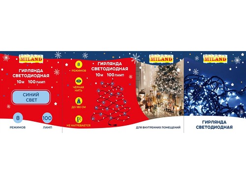 Эл. гирлянда светодиод.метраж. 10м,100ламп,син.свет,8реж. НУ-9729