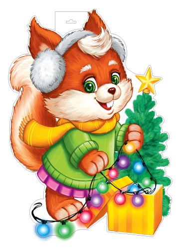 Плакат вырубной А3 Белочка с гирляндой и елочкой (двухсторонний, ВД-лак) Ф-16581