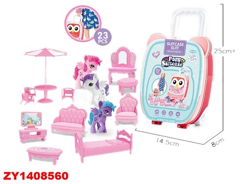 Набор мебели 666-2235M с пони (23 предм) в чемодане